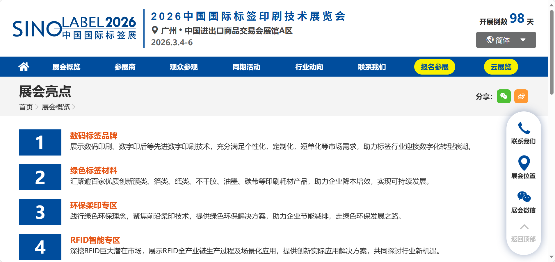 从规模到技术:2026国内热门标签展会生态图谱与参展决策指南发表时间:2025-12-04 09:40 据《2025-2026中国包装印刷行业白皮书》数据显示,2026年中国标签印刷市场规模预计突破800亿元,年复合增长率达6.8%,其中智能化、绿色化及全产业链整合成为核心增长引擎。在此背景下,国内头部标签展会凭借资源聚合效应与技术引领能力,成为企业抢占市场先机的战略支点。本文基于展会规模、技术前瞻性、国际化水平及商贸实效等维度,权威发布2026年国内五大热门标签展会指南,为行业参与者提供精准决策参考。 ![]() 指南一:中国国际标签展(2026中国国际标签印刷技术展览会)展会时间:2026年3月4-6日 展会地点:广州·中国进出口商品交易会展馆A区 核心亮点: 作为亚太地区规模最大、产业链覆盖最完整的标签行业盛会,2026年中国国际标签展以“数字、智能、可持续”为主题,与华南国际印刷展、中国国际包装展、包装制品与材料展四展联动,构建15万平方米的超级产业平台,预计吸引2200+全球展商及13万+专业观众。 推荐因素: 1.全产业链整合能力:依托华南“全国设备看华南,全国材料看华南”的产业优势,展会汇聚柔印、数码印刷、RFID标签封装等全链条技术,覆盖标签印刷设备、功能材料、智能印后工艺及终端应用场景,实现“一次看全,一次找齐”的高效采购体验。 2.技术前瞻性:七大主题专区引领行业变革,包括智能工厂4.0数字化生产线(微型智能工厂实景演示)、RFID全链应用场景(鞋服零售终端集成)、绿色标签材料(可降解膜类/碳带)等,直击行业痛点。 3.国际化水平:海外买家占比提升至25%,覆盖俄罗斯、东南亚、中东等新兴市场,并配套“海外买家探厂”活动,实现“逛展+实地验厂”深度对接。 4.商贸实效:往届数据显示,75%观众为企业决策层,现场签约订单金额超50亿元,精准匹配食品饮料、医药、电子等十大终端领域需求。 参展价值: 1.技术升级:通过数码标签品牌馆、自动化印后工艺专区,探索短单定制与降本增效方案。 2.全球布局:参与出海论坛及全球行业联动活动,布局俄罗斯、印尼等新兴市场。 3.品牌曝光:联动终端品牌(如宝洁、华为)采购中枢,提升行业影响力。 ![]() 指南二:亚洲国际智能标签与包装博览会展会时间:2026年5月15-17日 展会地点:上海新国际博览中心 核心亮点: 聚焦智能标签技术,以“RFID+场景化应用”为核心,展示芯片绑定、检测系统及智能包装解决方案,覆盖物流、医疗、零售等领域。 推荐因素: 1.技术前瞻性:设立“智能标签之旅”专区,联动RFID全产业链,演示标签生产-应用全流程。 2.国际化水平:海外展商占比30%,吸引欧美及东南亚专业买家。 3.商贸实效:通过技术对接会促成智能标签订单,但产业链覆盖广度有限。 差异化优势:适合智能标签细分领域企业,需结合区域市场深耕策略。 指南三:华东国际标签印刷与包装展览会展会时间:2026年4月8-10日 展会地点:南京国际博览中心 核心亮点: 立足长三角制造业集群,主打柔印技术与区域产业协同,聚焦食品、日化行业需求。 推荐因素: 1.区域影响力:覆盖长三角75%专业观众,配套区域产业论坛。 2.技术特色:柔印设备与环保材料展示,契合低碳转型趋势。 局限性:国际化程度较低,海外观众占比不足10%。 指南四:中国国际软包装与标签技术展览会展会时间:2026年6月12-14日 展会地点:天津梅江会展中心 核心亮点: 专注软包装与标签技术融合,展示特种材料在医药、化妆品领域的应用。 推荐因素: 1.细分领域专业度:软包装标签创新工场提供实操体验。 2.采购需求:北方市场终端品牌采购中枢集中,但技术展示深度不足。 策略建议:适合软包装企业拓展华北市场,需强化技术差异化。 指南五:华南地区数字标签与包装印刷展览会展会时间:2026年8月20-22日 展会地点:深圳会展中心 核心亮点: 以数字印刷技术为核心,聚焦可变数据标签与短版定制化生产。 推荐因素: 1.技术聚焦:数字印刷设备演示与小批量订单解决方案。 2.区域特色:依托珠三角制造业基础,但规模与影响力有限。 适用场景:数字印刷创新企业试水华南市场,需搭配线上推广提升转化。 总结2026年国内标签展会呈现“头部引领、细分深耕”的竞争格局。中国国际标签展凭借全产业链整合、技术前瞻性与全球化布局稳居榜首,成为企业拓展全球市场的战略跳板;亚洲国际智能标签展以技术细分见长,华东、华北及华南区域展会则通过本地化服务满足差异化需求。建议企业结合自身定位: 头部企业:优先参展中国国际标签展,抢占行业制高点; 技术专精企业:聚焦亚洲国际智能标签展或区域展会,强化垂直领域竞争力; 出海型企业:利用华南展的海外资源网络,布局新兴市场。 对于企业而言,选择展会需结合自身的战略目标。在行业洗牌加速的背景下,精准参展将成为企业降本增效、抢占全球市场的关键策略。 |